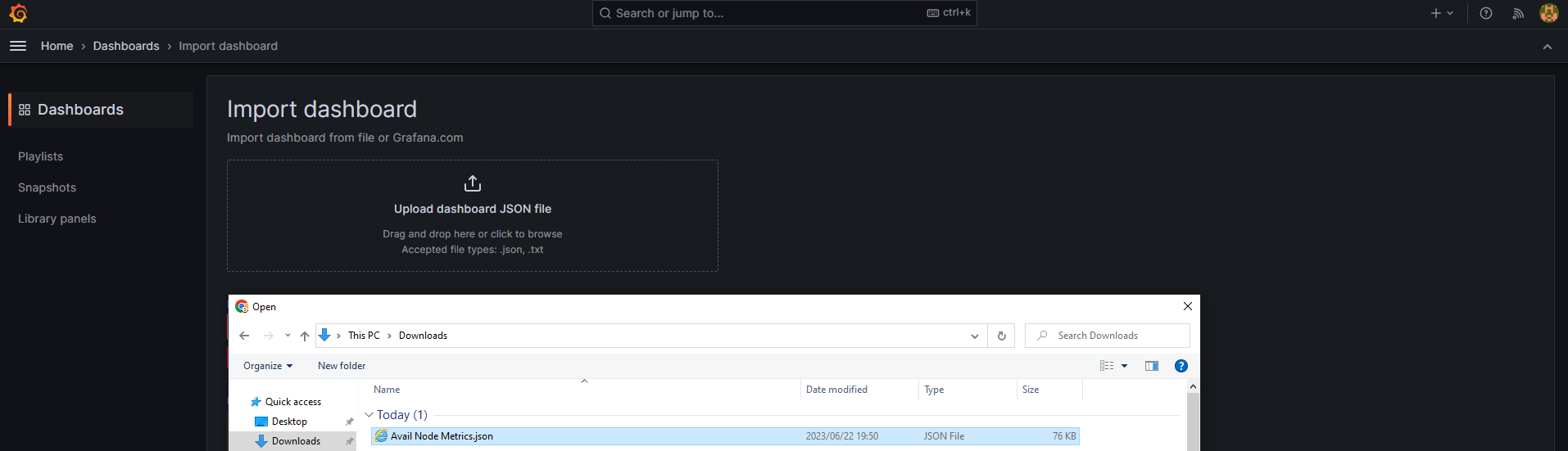 Import the Avail Node Metrics file