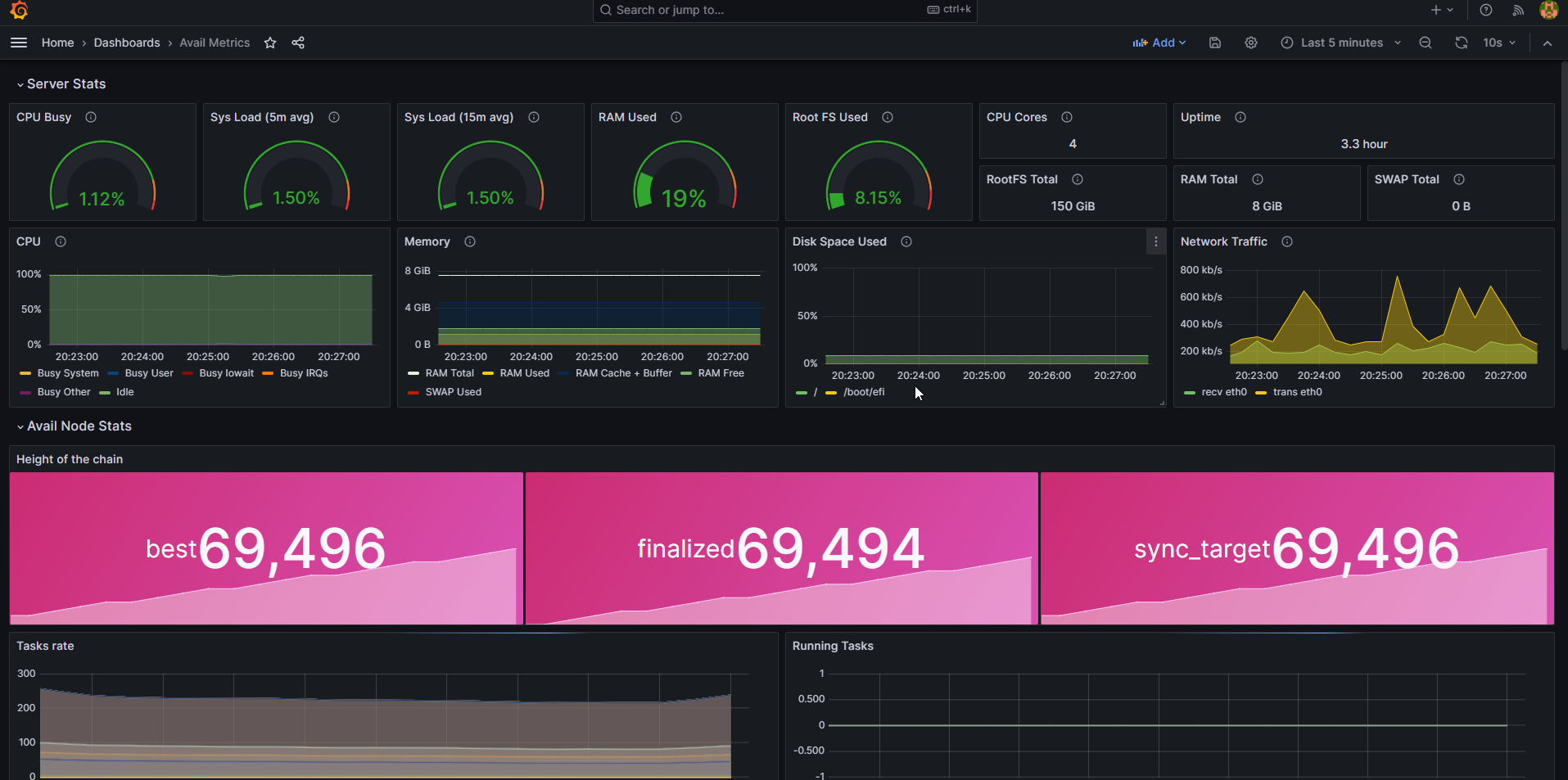 The below guide is for setting up a local Prometheus & Grafana instance on the same server as your Avail node. If you’re already experienced with Prometheus & Grafana and want to connect your Avail node to an existing Prometheus installation on a different server, include the --prometheus-external