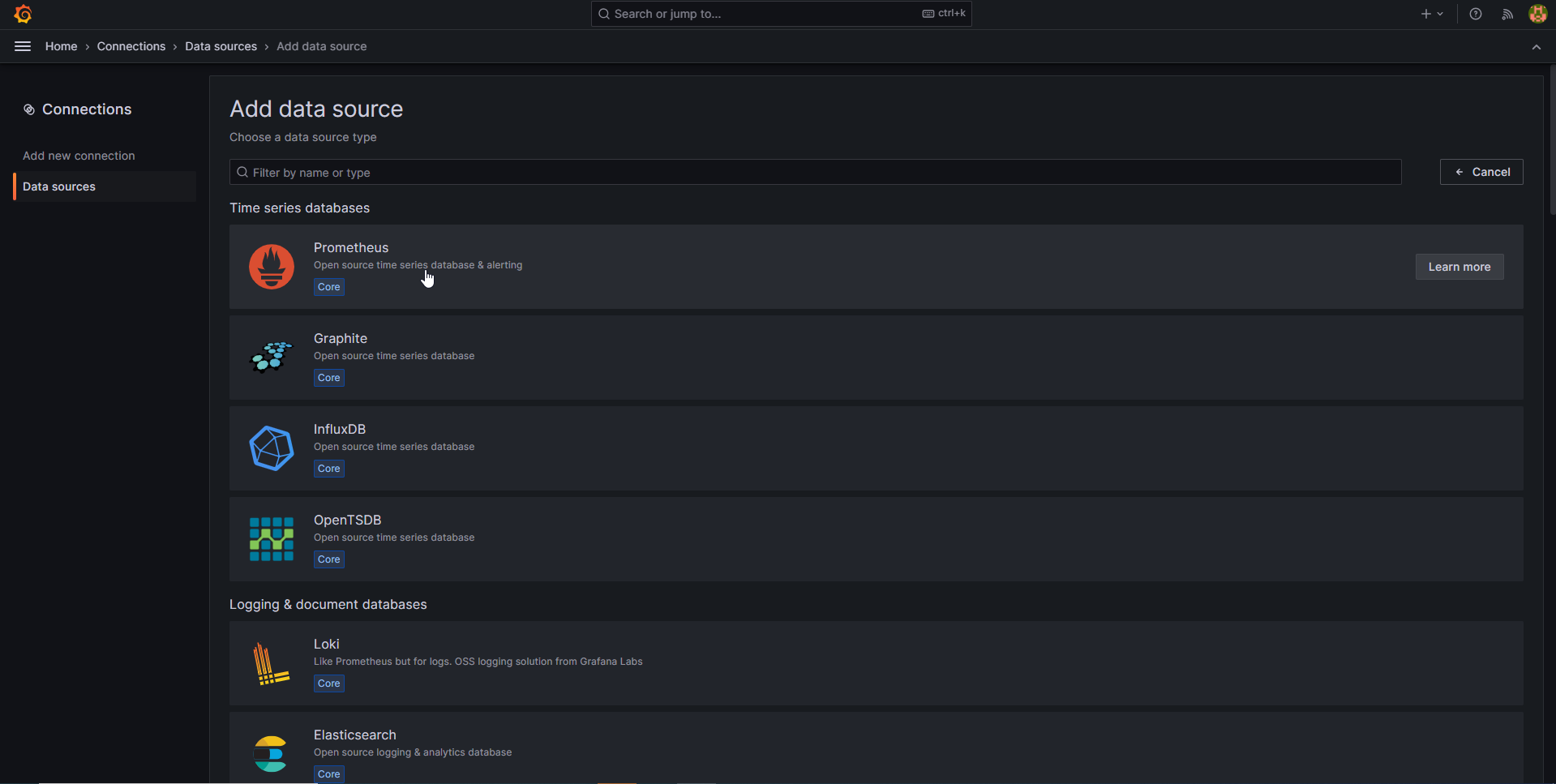 Click on Add data source
