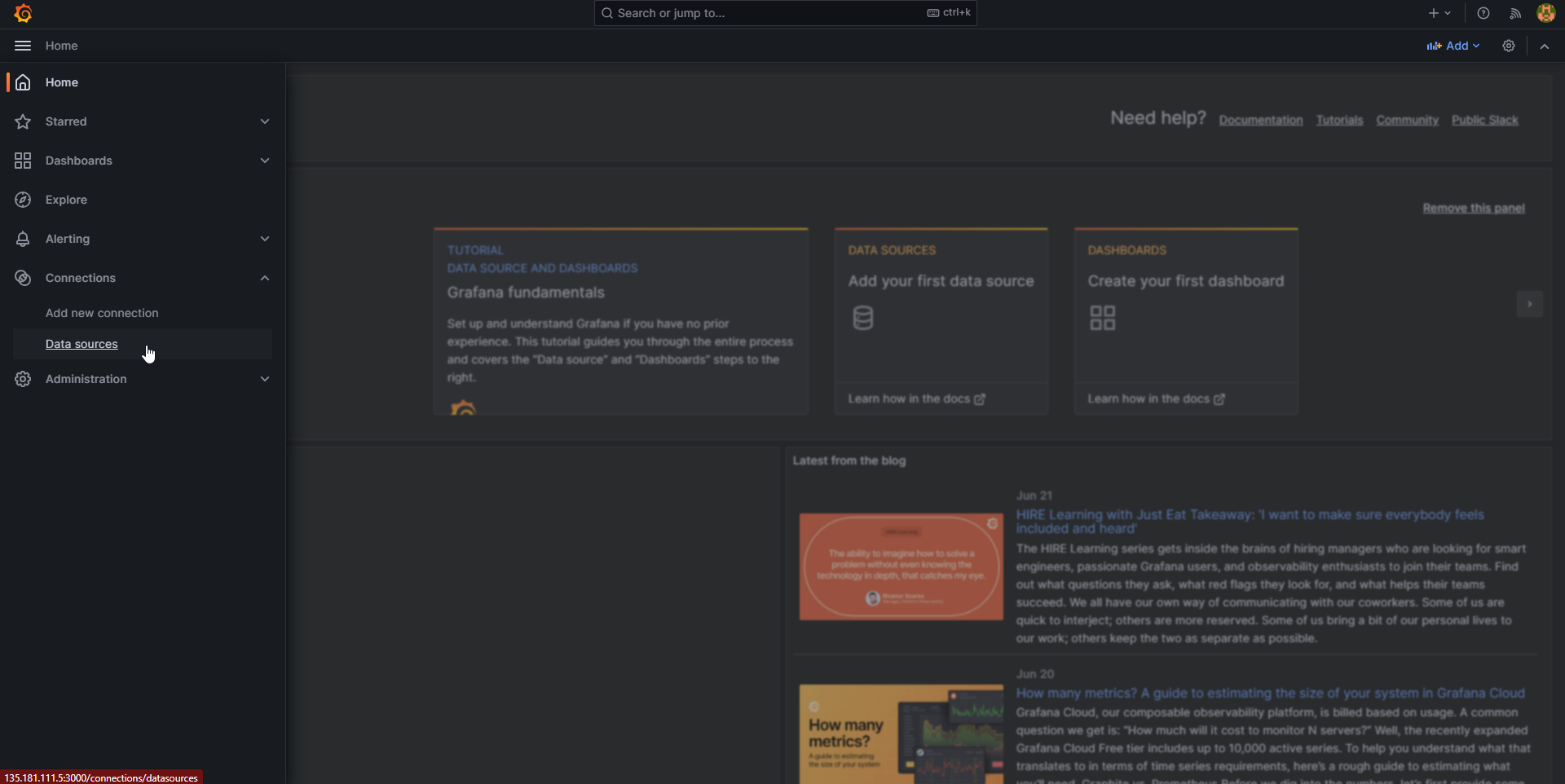 You will need to create a datasource. Navigate to Home->Connections->Data sources