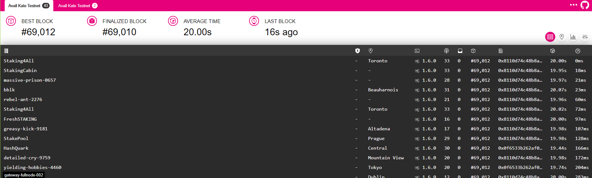 Avail project has made available a public telemetry for anyone to view the status of their nodes. This should not replace your own monitoring and alerts. However it is a key tool that anyone can use to view the status of their nodes at anytime.