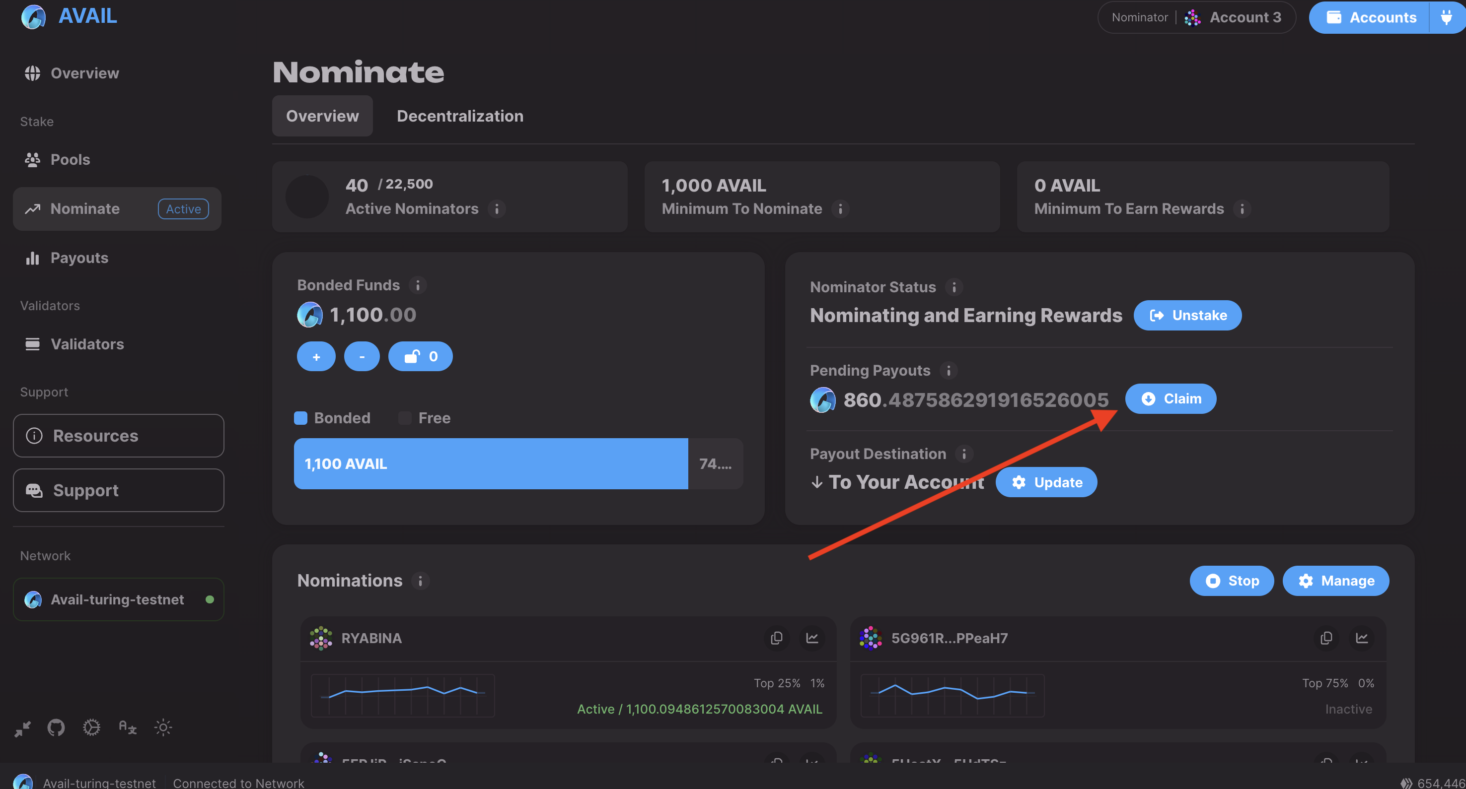 And that’s it! This guide walked you through nominating your AVAIL directly to validators of your choice. Go to the next page to learn how to work with nomination pools.